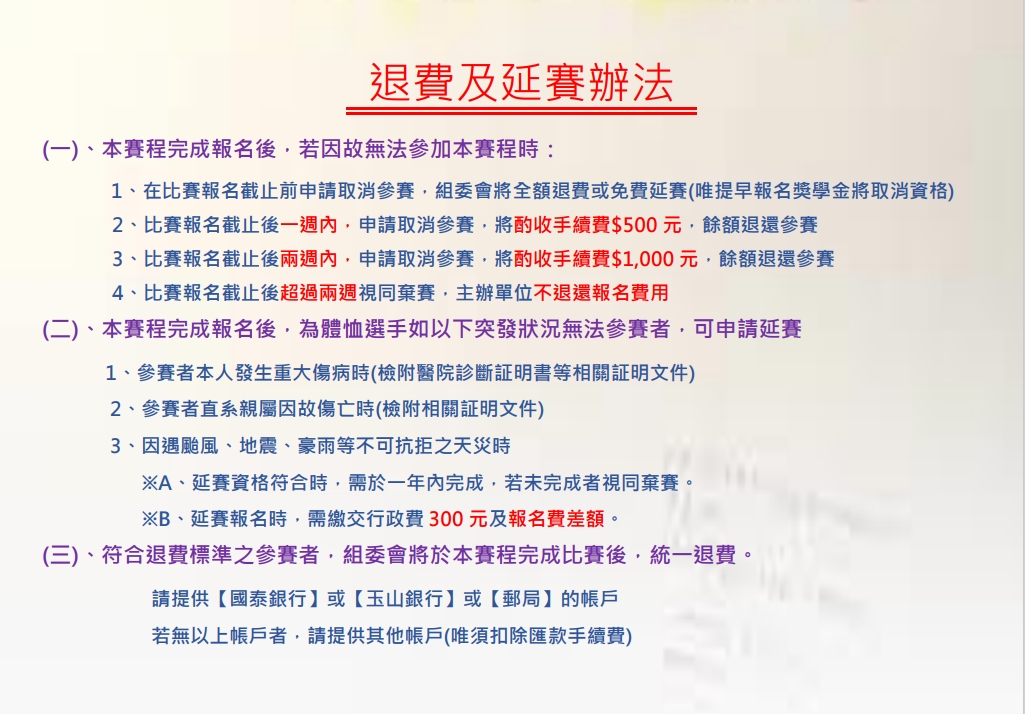 校園菁英選拔賽-退費辦法