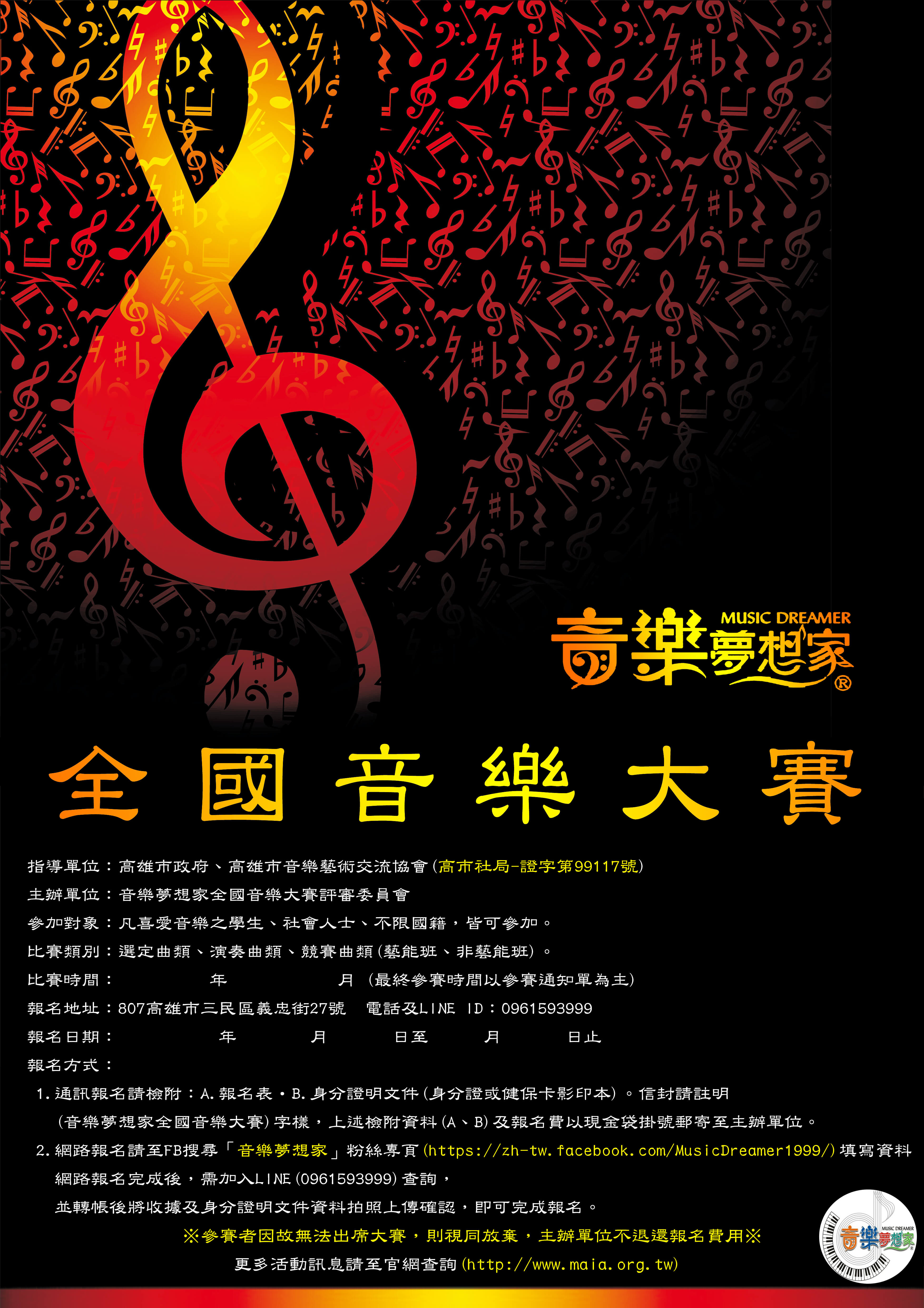 2.活動相關訊息請至FB搜尋「音樂夢想家Music Dreamer」粉絲專頁https://www.facebook.com/MusicDreamer1999